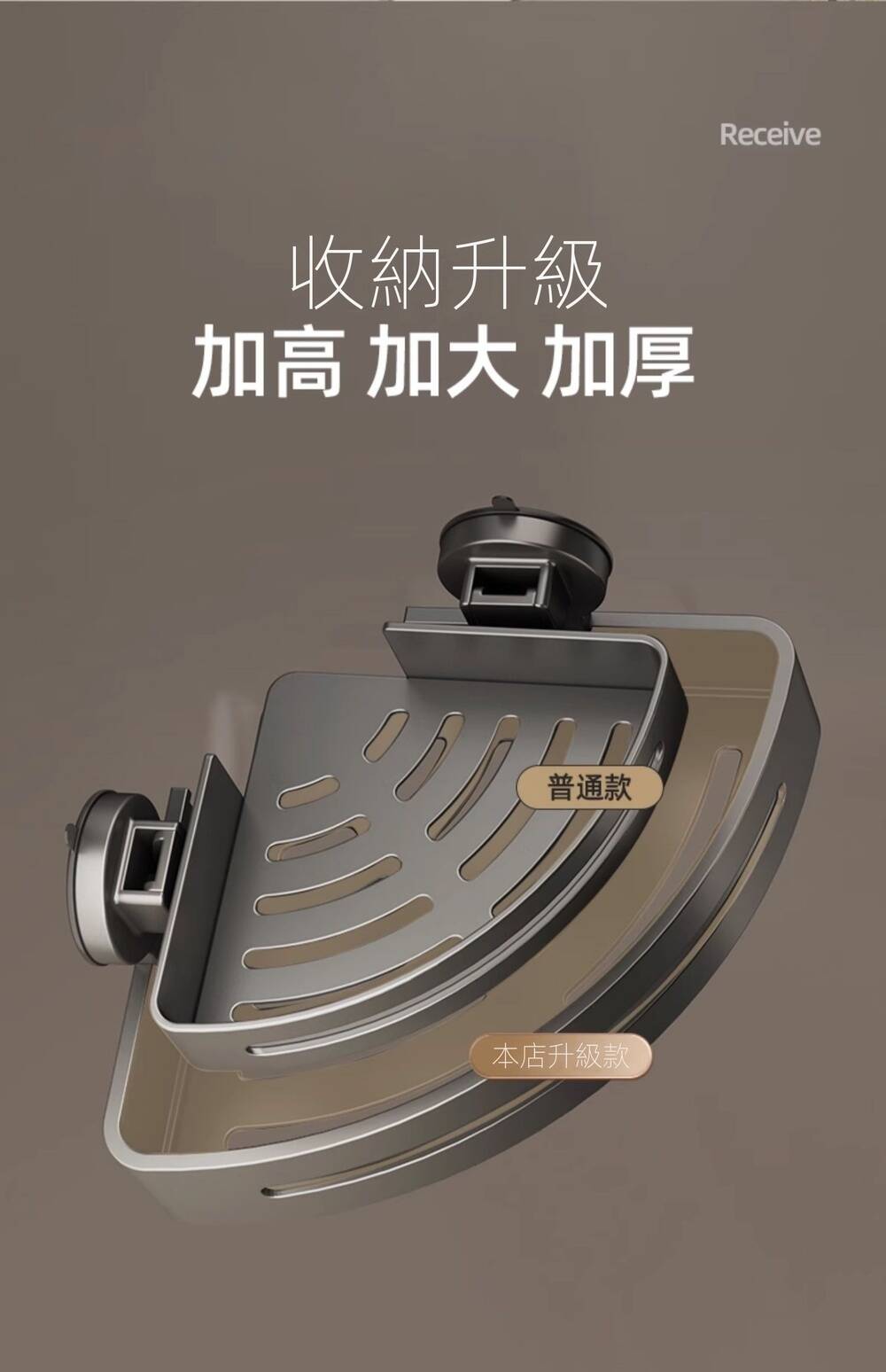 20分鐘前自帶吸盤,可隨時移動重復使用的置物架 免打孔廚房浴室衛生間三角置物架多用途壁掛收納架毛巾架 - 【超夯下殺】買一送二,共三入組 NT$998