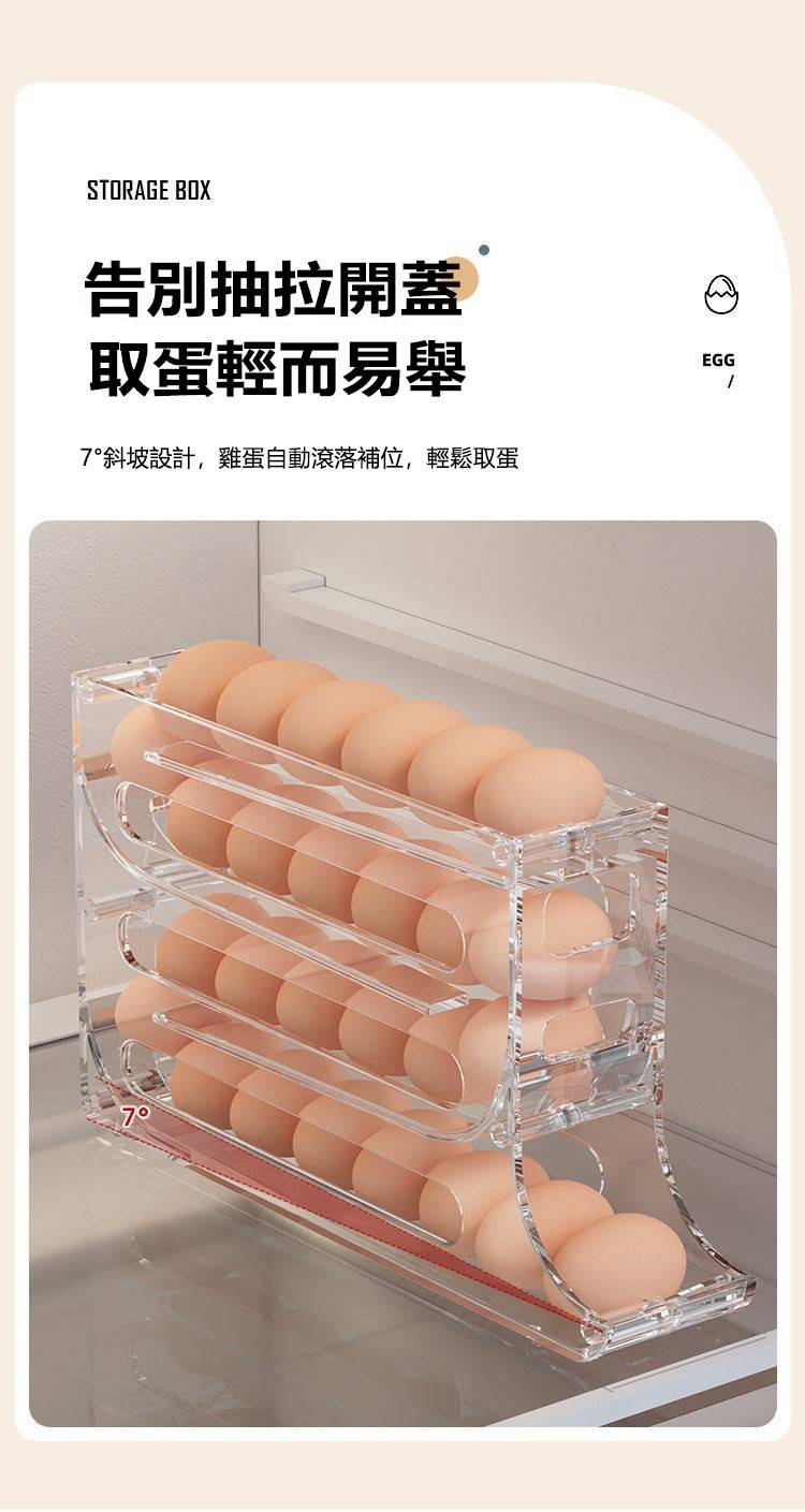 4分鐘前自動滾蛋式雞蛋收納盒 - 7入组(可放210個雞蛋)NT$1498