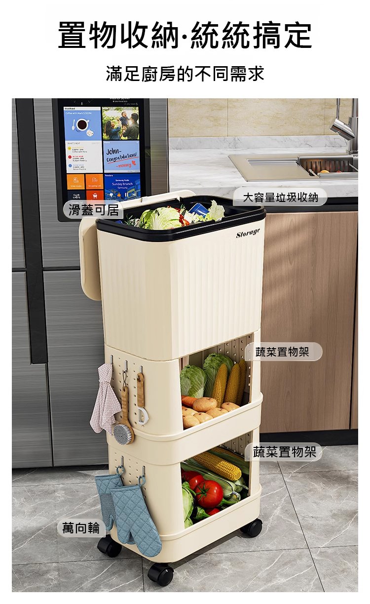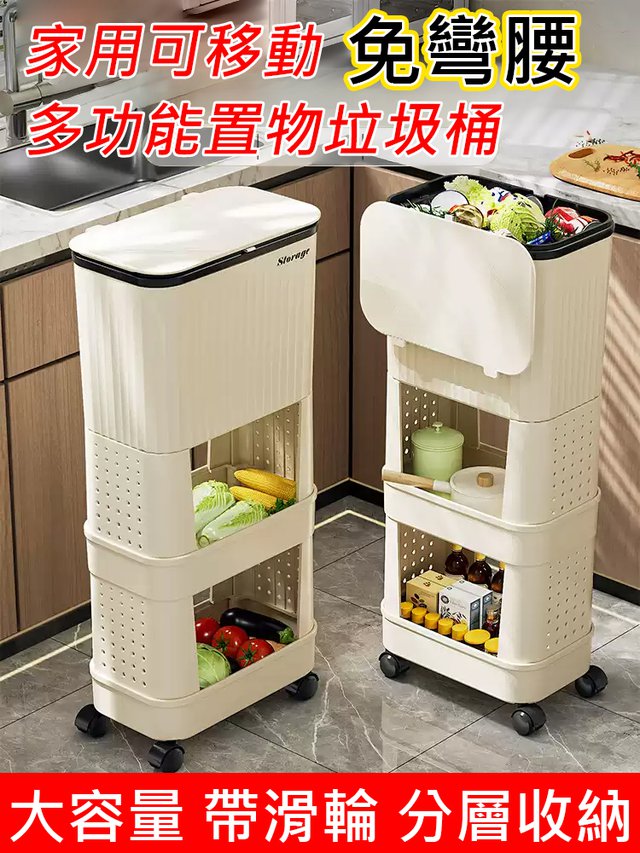 4分鐘前【不彎腰】家用可移動多功能置物垃圾桶 - 【超殺*贈20垃圾袋】1入組$279